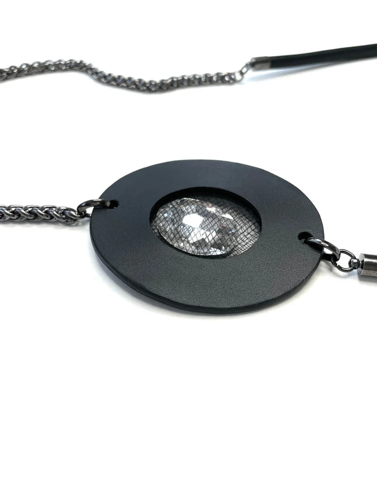 Браслет-кулон наборный из кожи КРУГ чёрный арт 39401 |