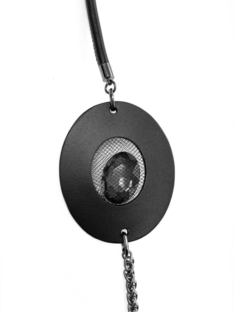 Браслет-кулон наборный из кожи КРУГ чёрный арт 39401 |