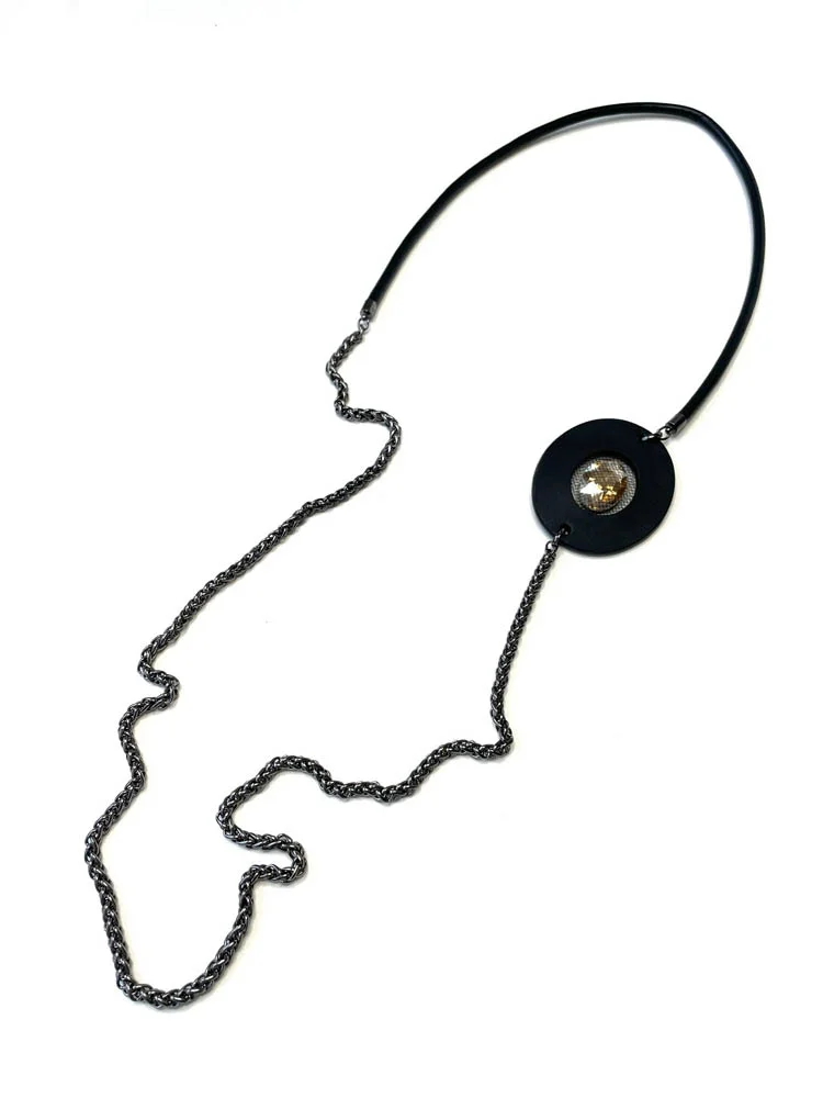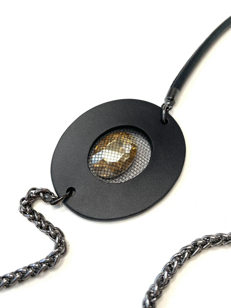 Браслет-кулон наборный из кожи КРУГ чёрный арт 39401 |