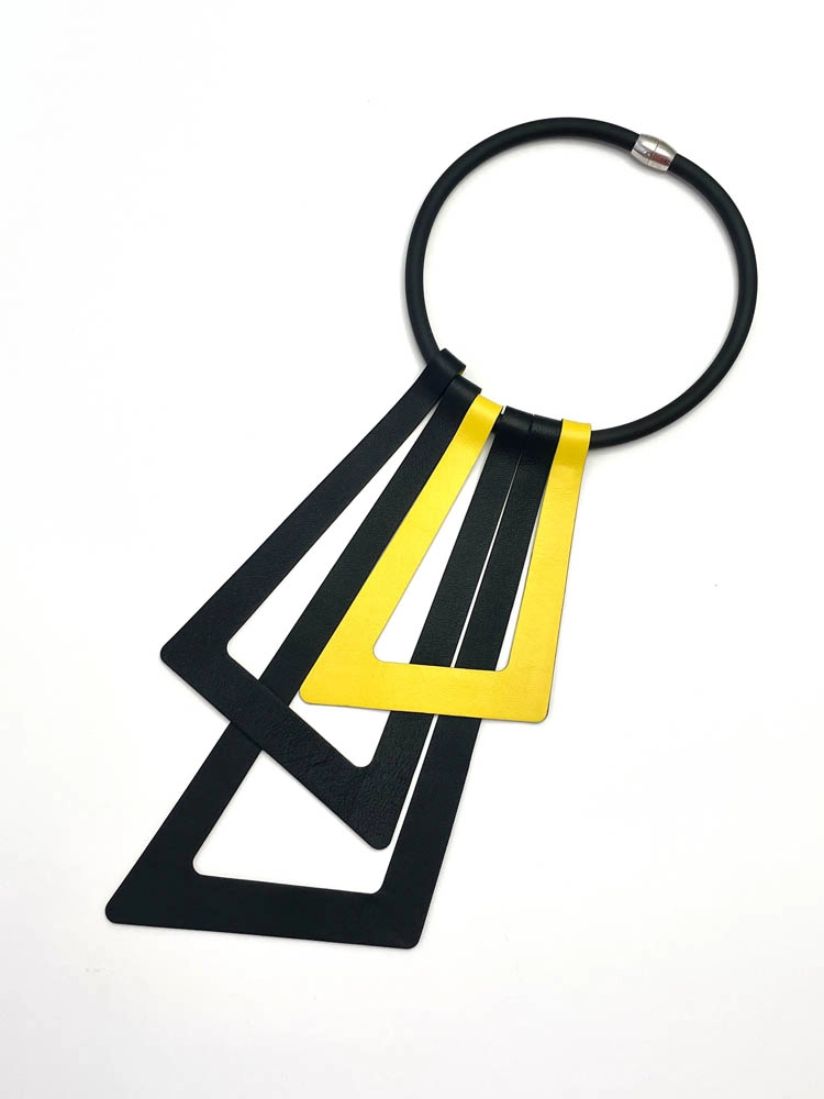 Жабо из кожи ЗИГЗАГ чёрный жёлтый арт 33203