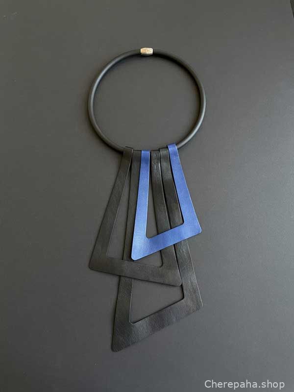 Жабо из кожи ЗИГЗАГ синий чёрный арт 33201