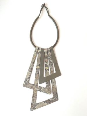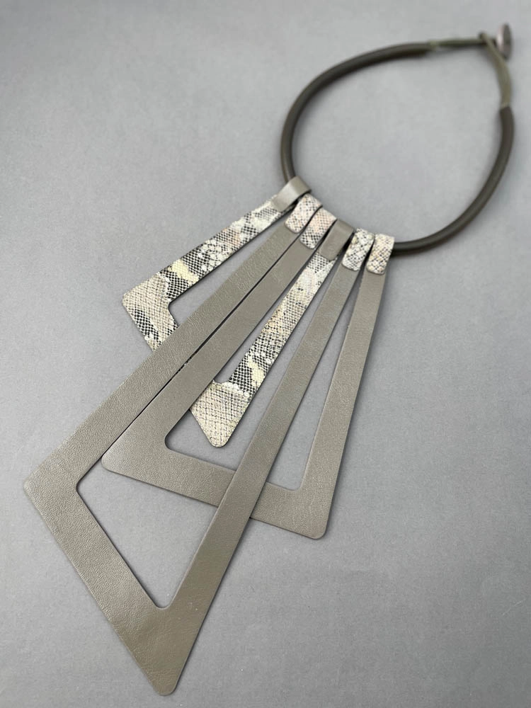 Жабо из кожи ЗИГЗАГ цвет тауп и змея айвори