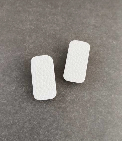 Серьги из кожи ПРЯМОУГОЛЬНИК, пусеты серебрение 12 мкм.