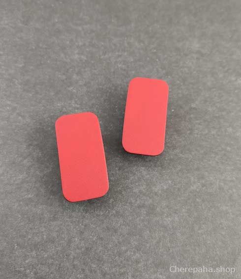 Серьги из кожи ПРЯМОУГОЛЬНИК, пусеты серебрение 12 мкм.