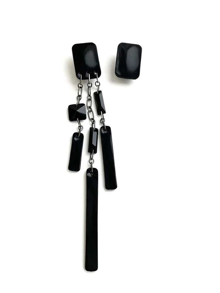 Серьги асимметричные чёрный лак