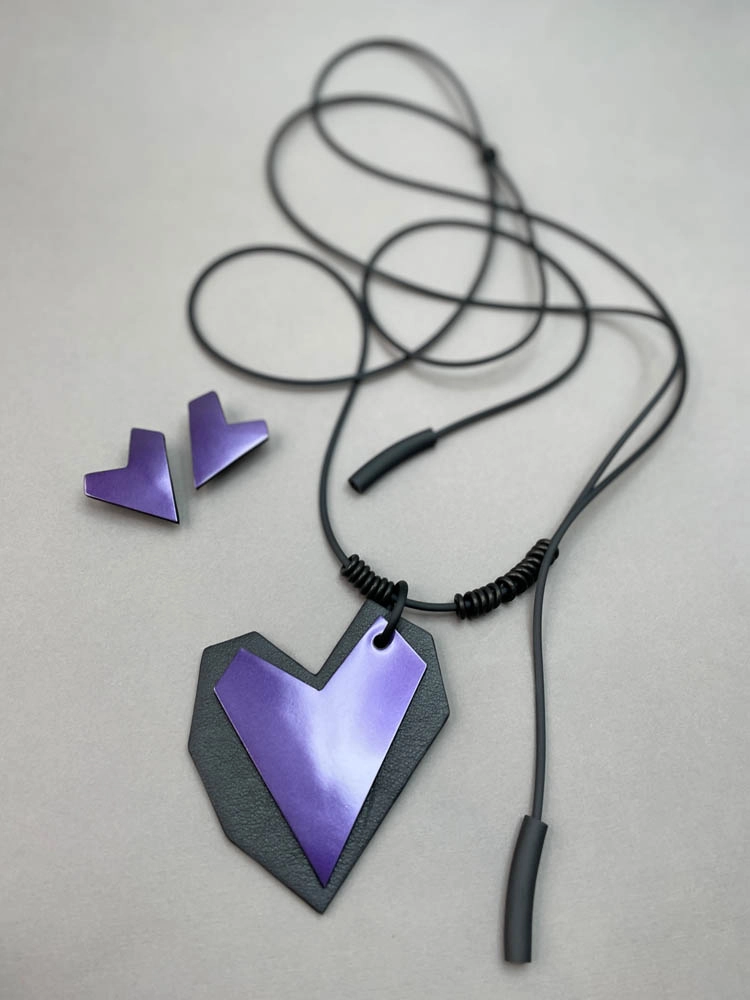 Кулон из кожи СЕРДЦЕ ПАРМЫ фиалковый чёрный арт 42802 |