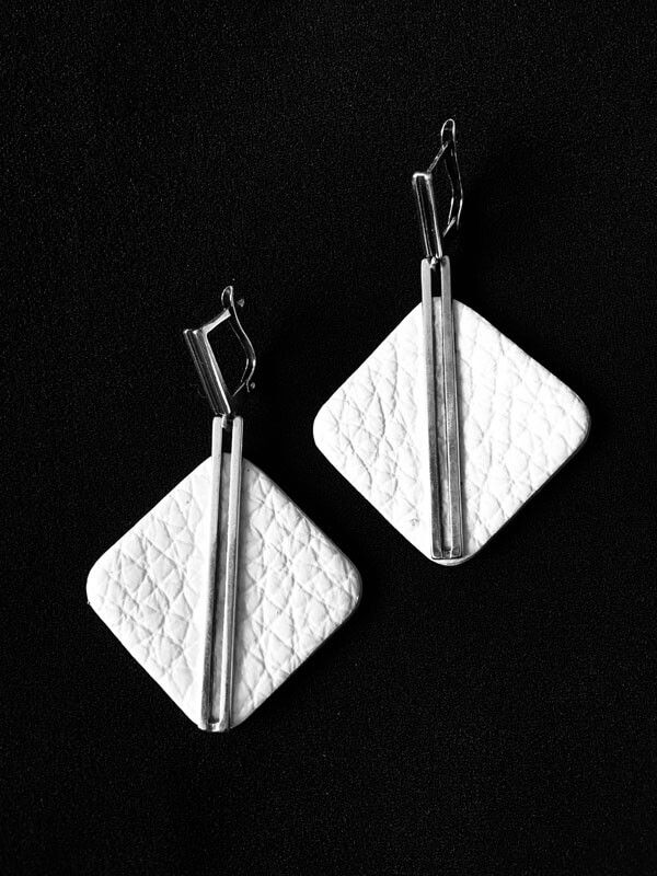 Серьги из натуральной белой кожи.