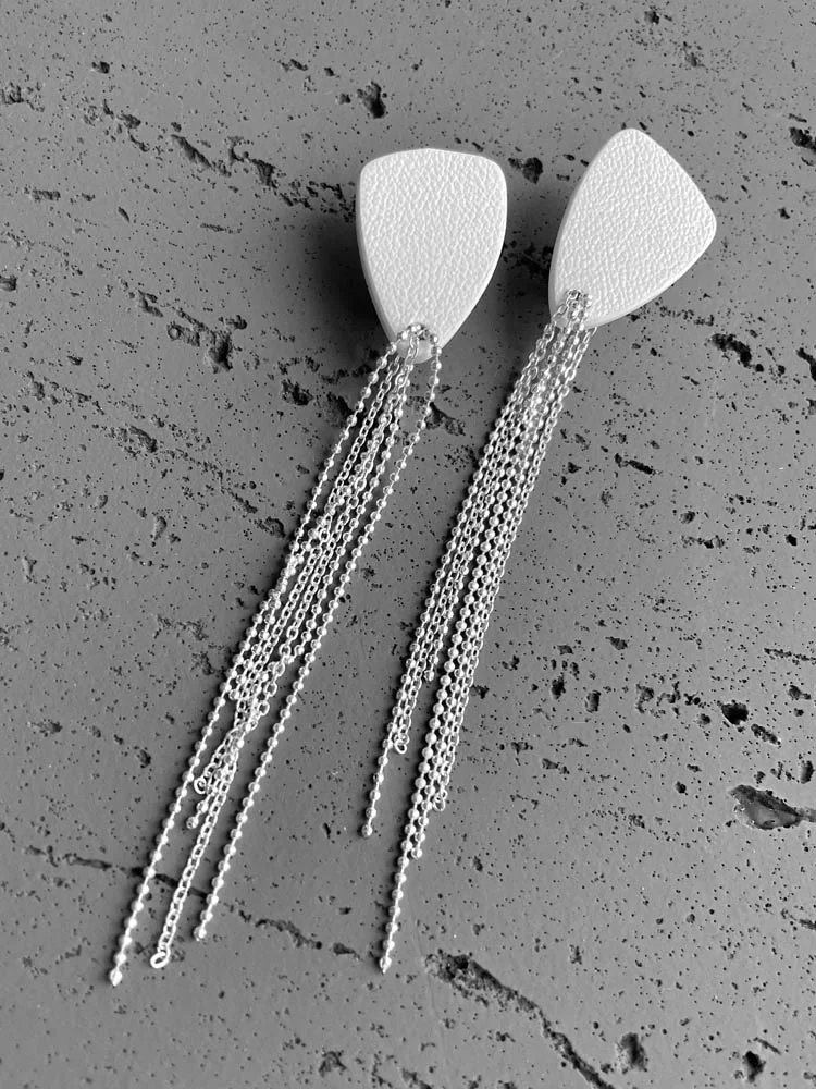 Колье из кожи БРИЗ белый белое серебро арт 56404 |