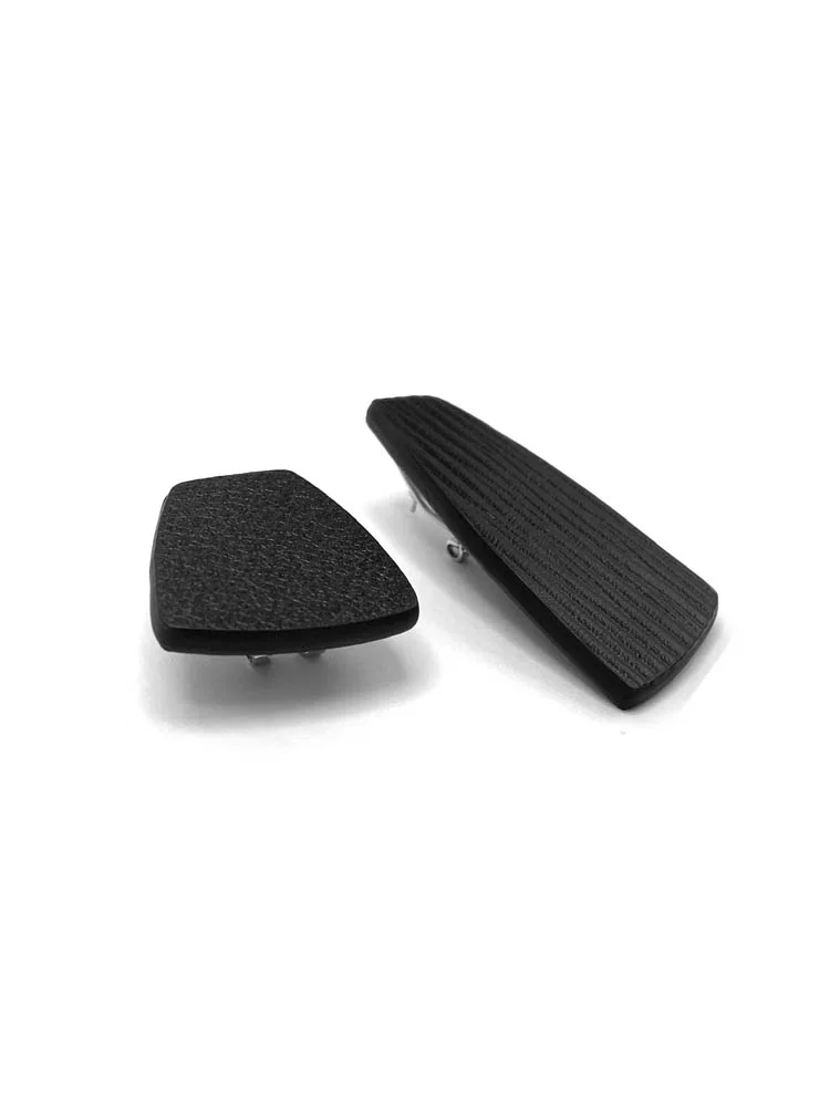 Серьги кожаные ЧИП асимметричные чёрный фактурный гладкий