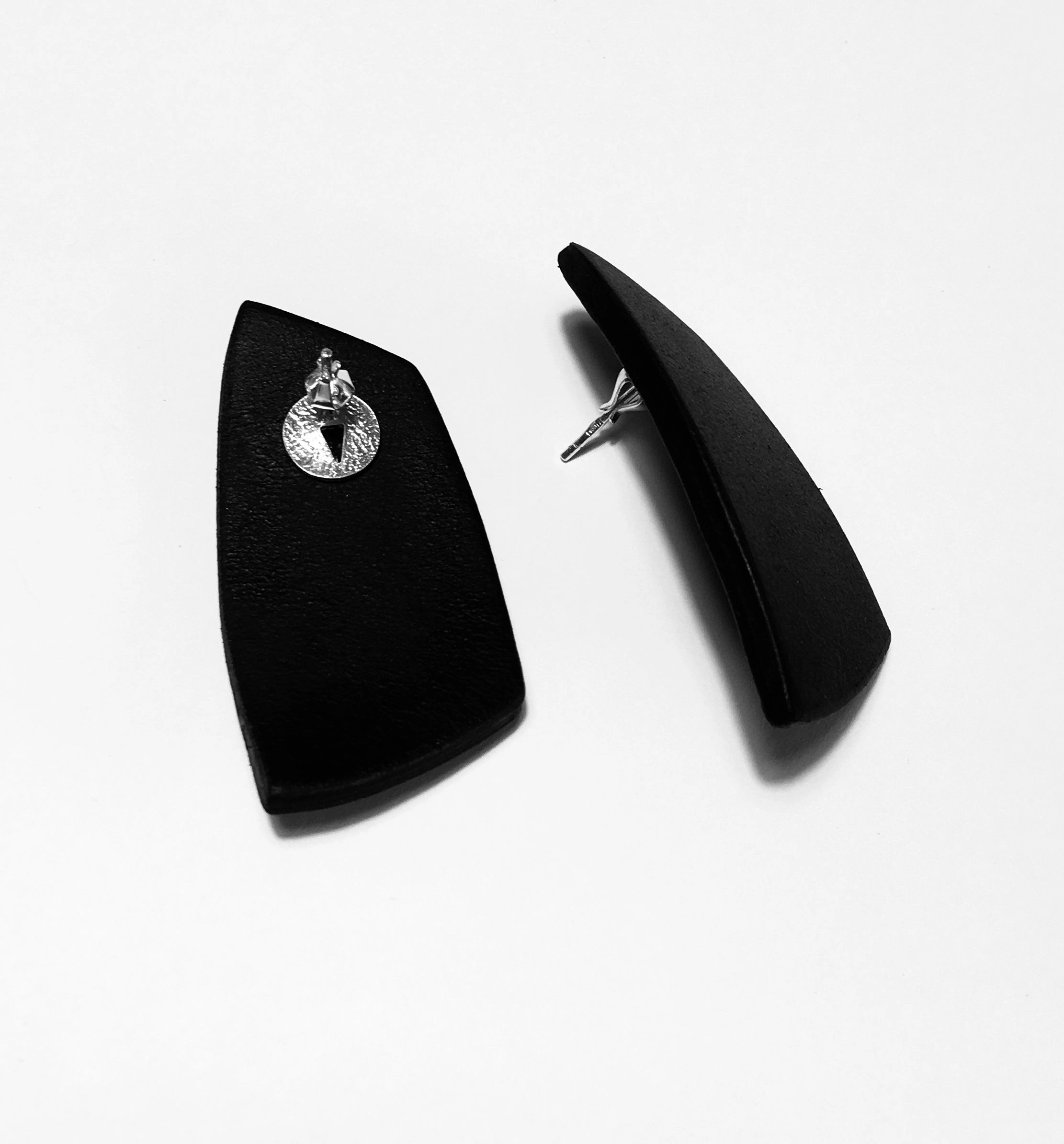 Серьги кожаные из ювелирного сплава с серебрение 12 мкм