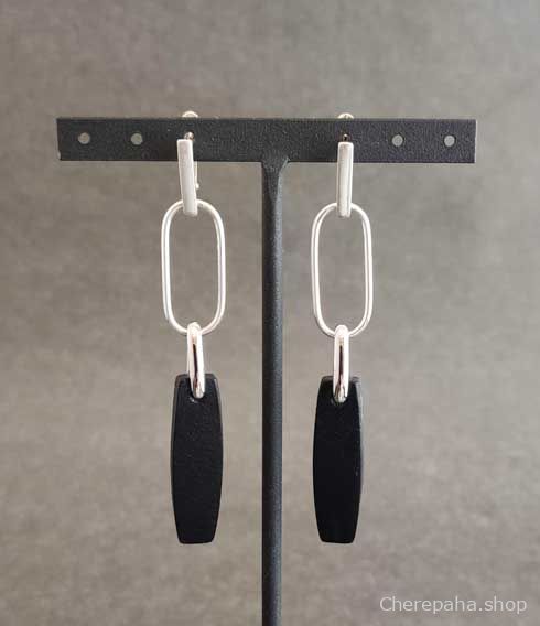 Серьги из кожи натуральная кожа, серебрение 12 мкм