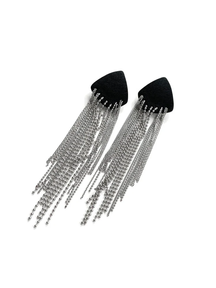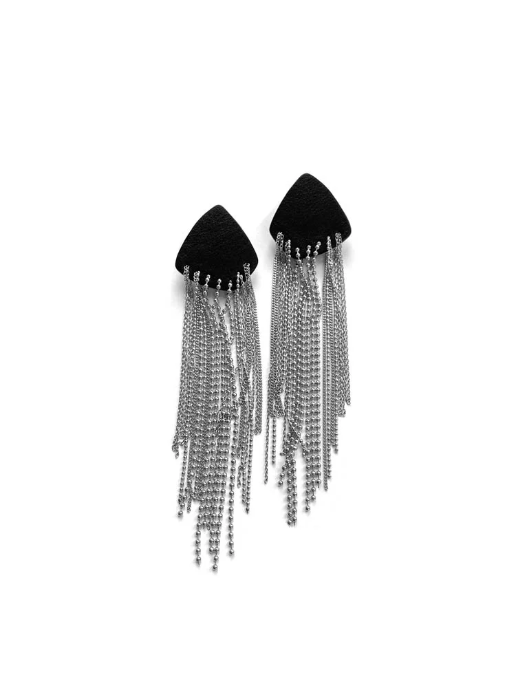 Серьги из кожи чёрный серебро арт 32310