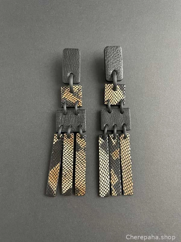 Кулон из кожи чёрный бежевая змея арт 31101 |