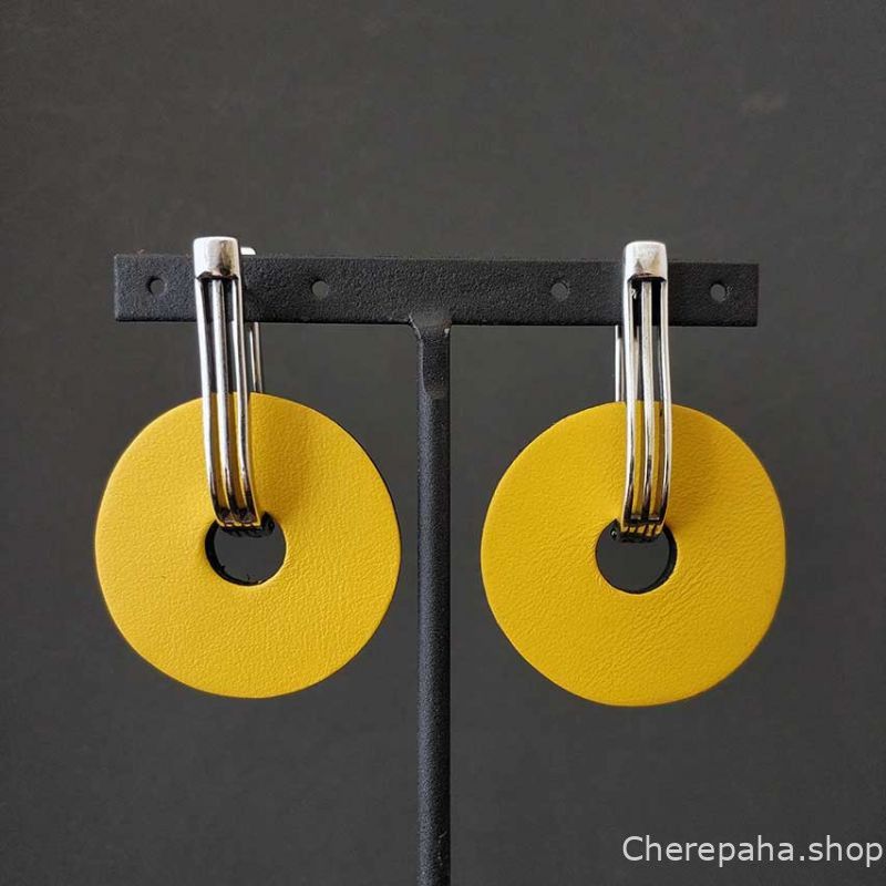 Серьги из кожи ДИСК трансформер двусторонние