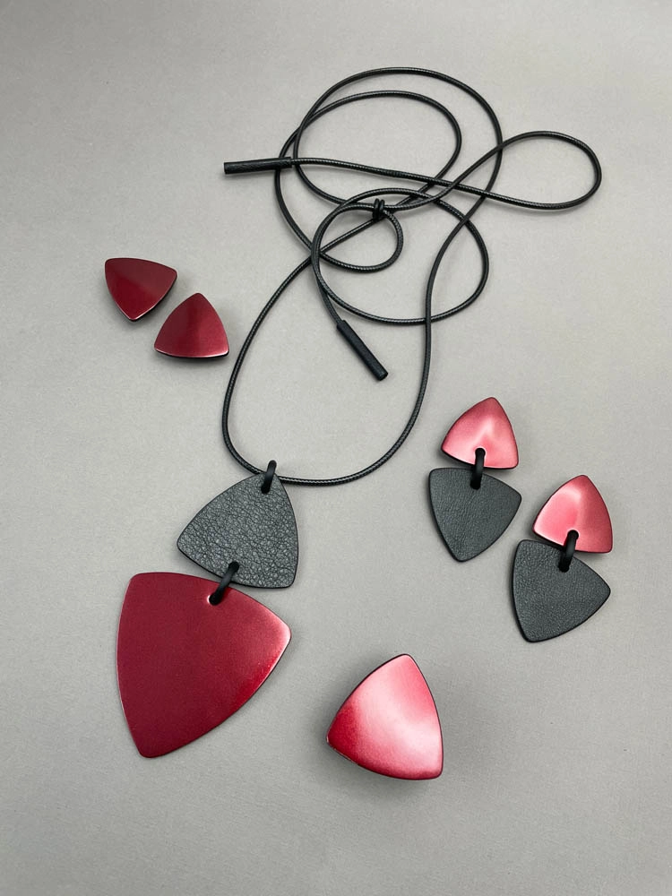 Серьги из кожи ТРЕУГОЛЬНИК красный лак арт 41507 |