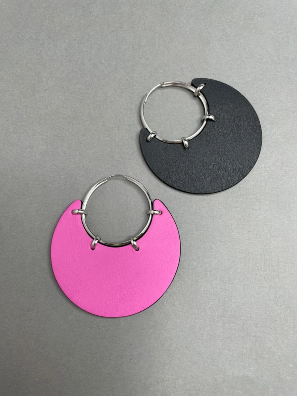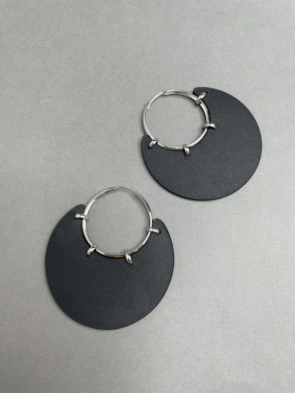 Серьги кожаные двусторонние, натуральная кожа, серебрение 12 мкм