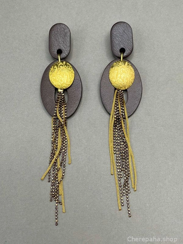 Серьги из кожи КОФЕ