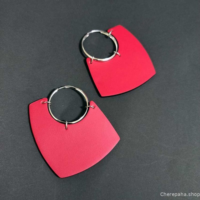 Серьги АСИММЕТРИЯ из натуральной кожи, серебрение 12 мкм.