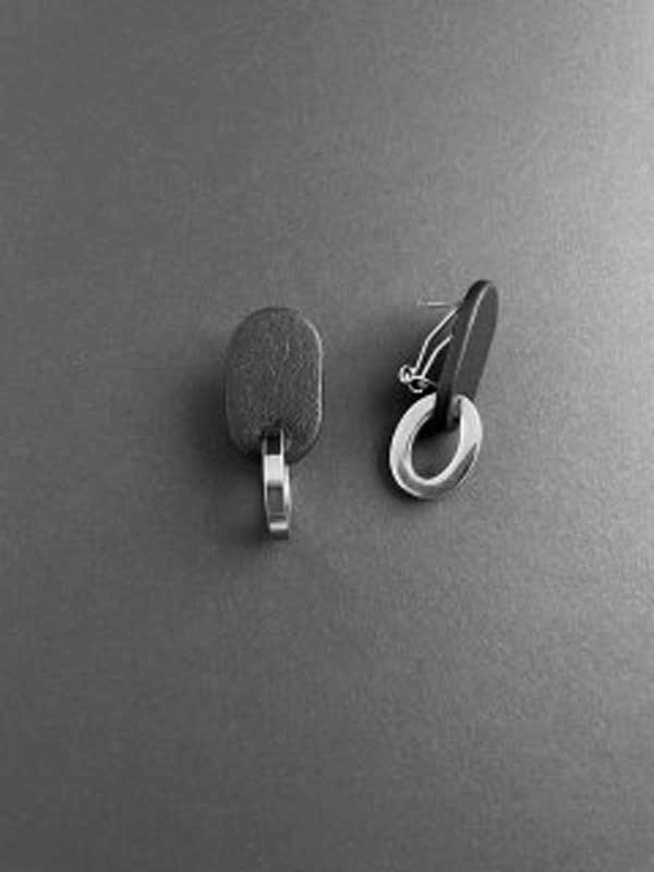 Серьги КОЛЬЦО НА КОЖЕ чёрный серебро арт 33501