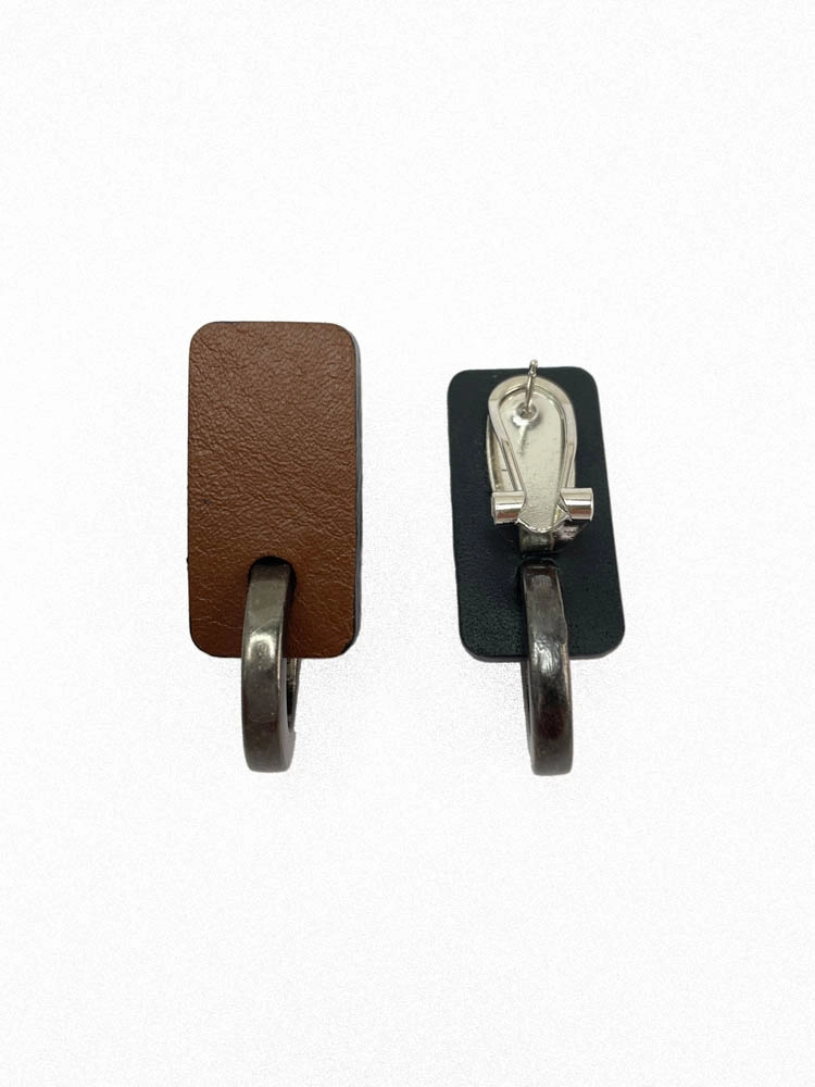 Серьги из кожи коричневый тёмное серебро арт 55102
