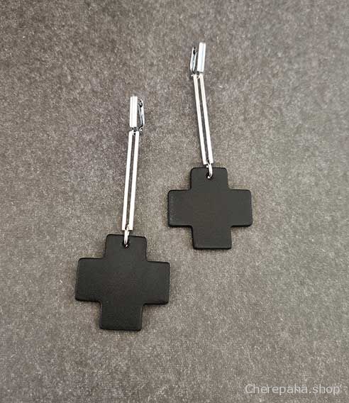 Серьги из кожи КРЕСТ S подвес чёрный арт 25401
