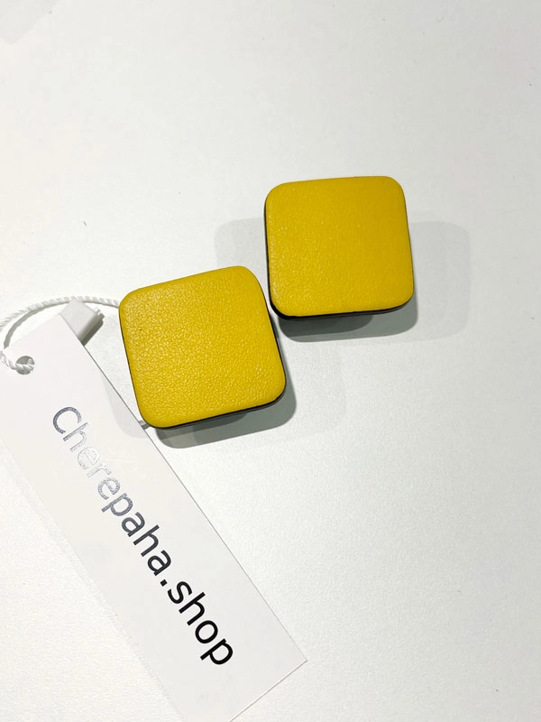 Серьги из кожи КВАДРАТ из натуральной кожи, серебрение 12 мкм.