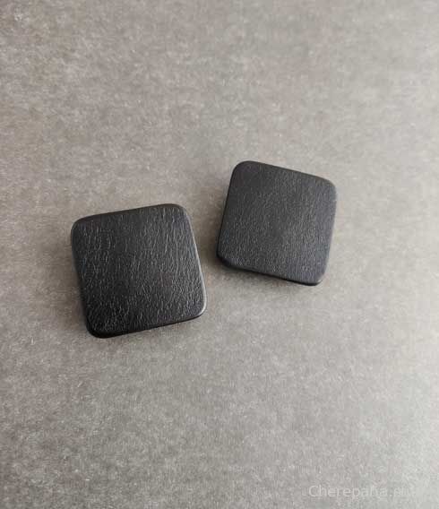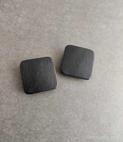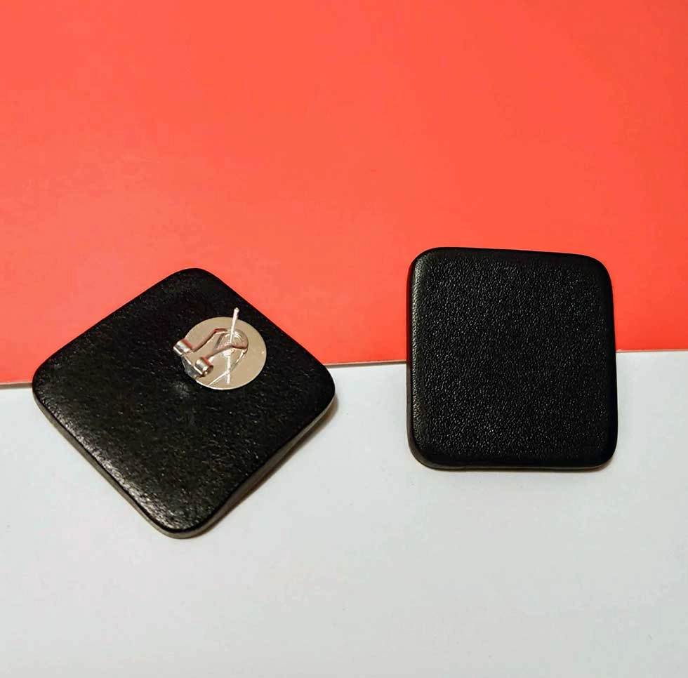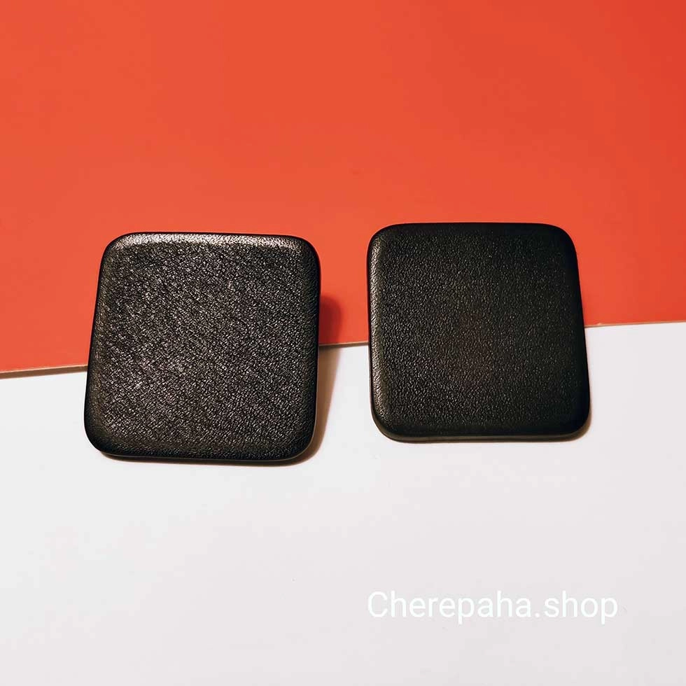 Серьги КВАДРАТ из натуральной кожи, серебрение 12 мкм.