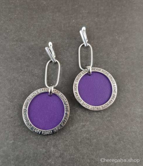 Серьги из кожи МЕЧТА фиолетовый арт 25206