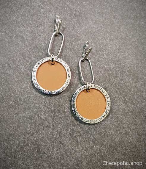 Серьги МЕЧТА натуральная кожа, ювелирный сплав