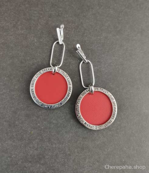 Серьги из кожи МЕЧТА красный арт 25203