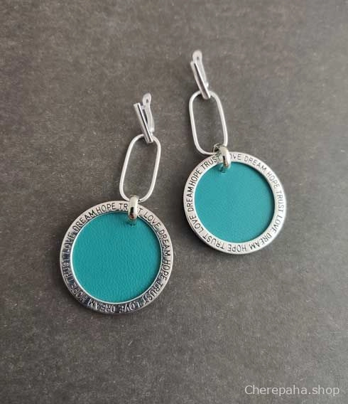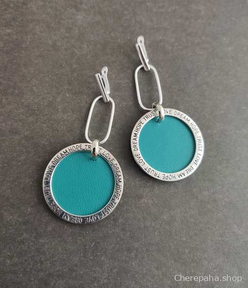 Серьги из кожи МЕЧТА бирюзовый арт 25207