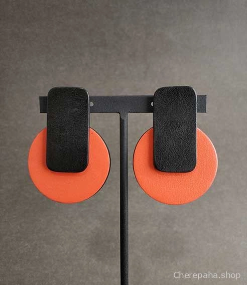 Серьги из кожи КРУГ + ПРЯМОУГОЛЬНИК