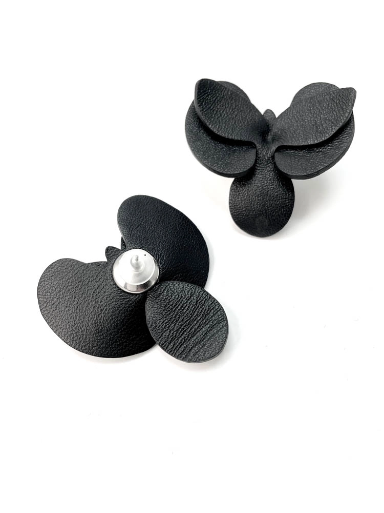 Серьги кожаные ОРХИДЕЯ пусеты чёрный арт 51101