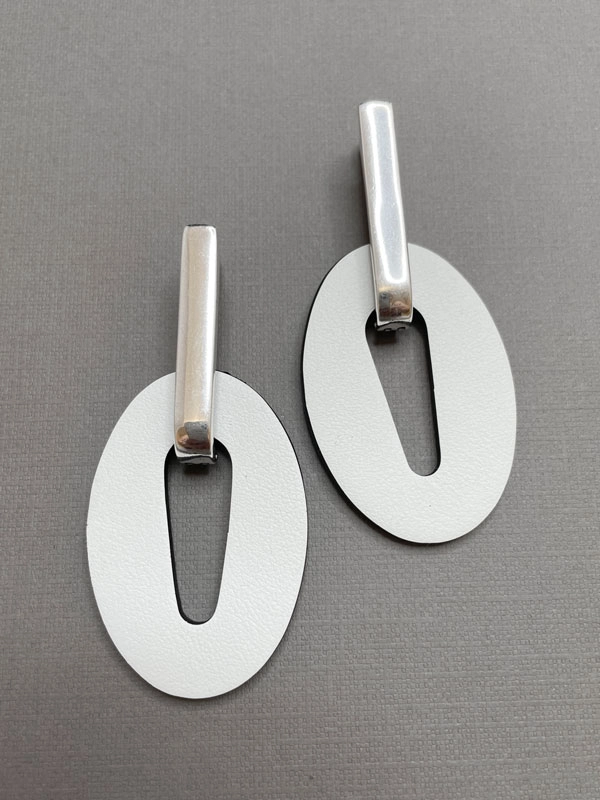Серьги из кожи ОВАЛ белый чёрный арт 38101
