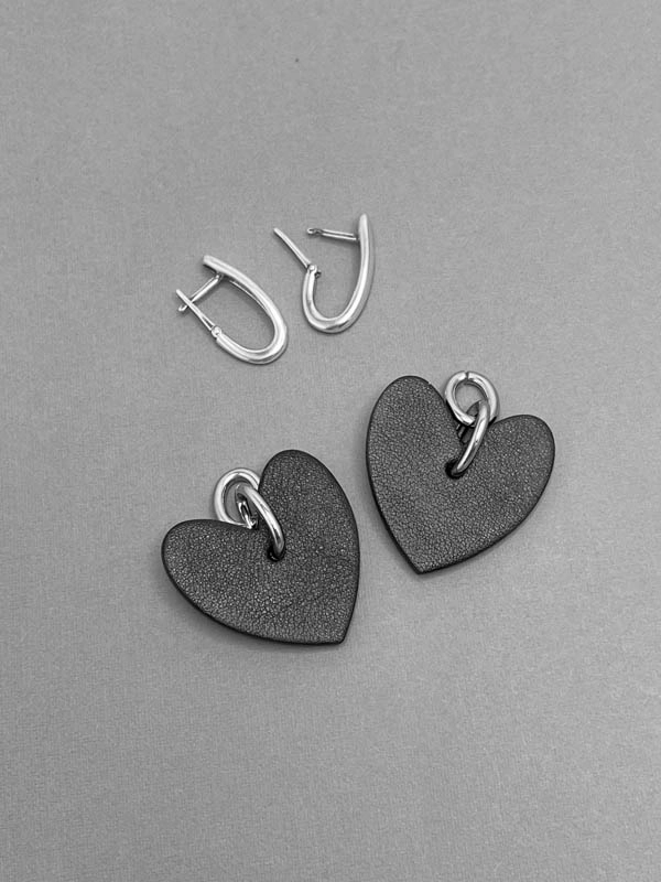 Серьги СЕРДЕЧКИ из кожи трансформер - можно использовать и как подвеску.