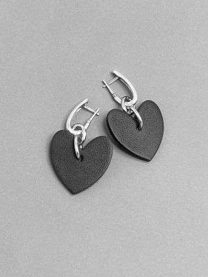 Серьги кожаные СЕРДЕЧКИ чёрный арт 43201