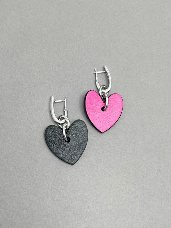 Серьги СЕРДЕЧКИ из кожи трансформер - можно использовать и как подвеску.
