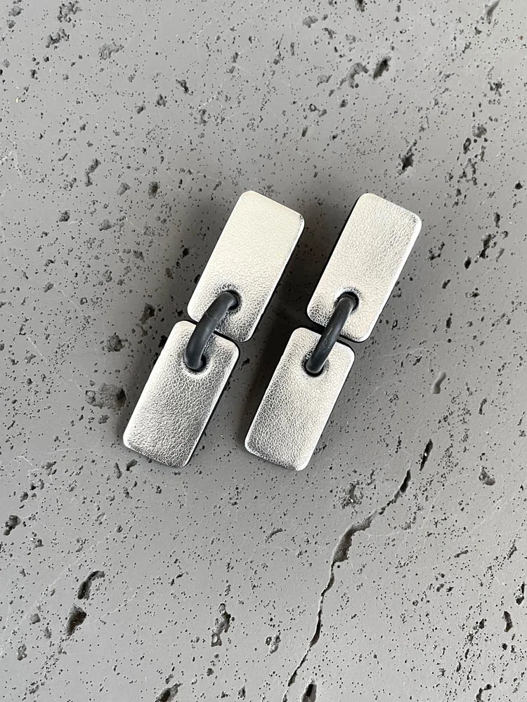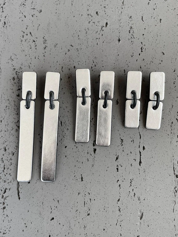 Серьги СТИК S из кожи цвет серебро глянец и чёрный.