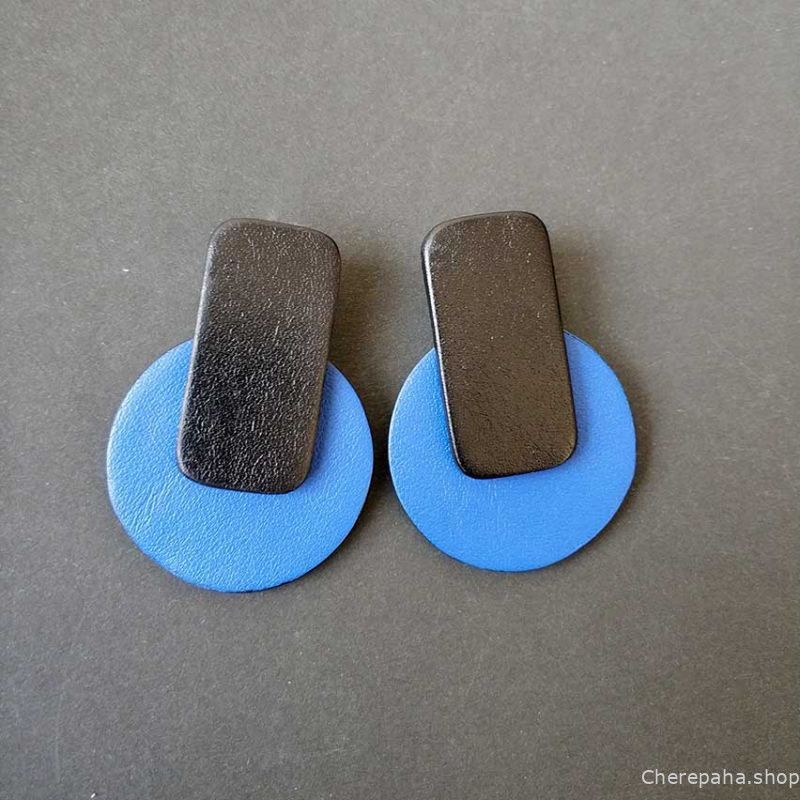 Серьги из кожи КРУГ + ПРЯМОУГОЛЬНИК
