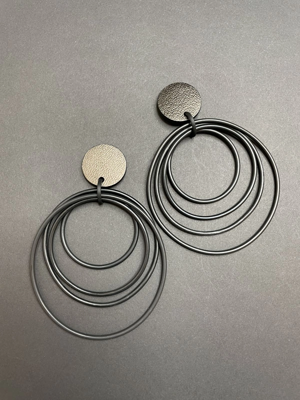 Серьги кожаные СПРИНГ тёмное серебро арт 28705