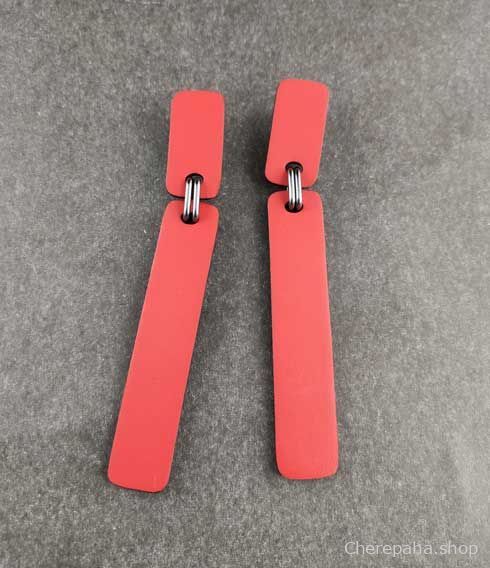 Серьги СТИК XL из натуральной кожи, серебрение 12 мкм.