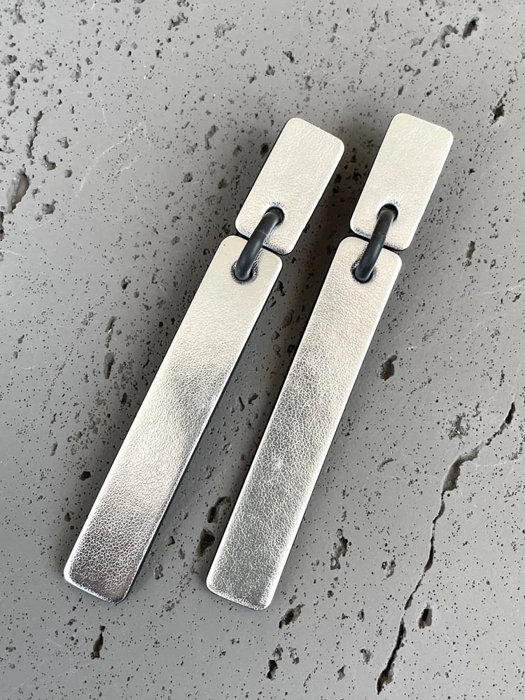 Серьги СТИК L из кожи цвет серебро глянец и чёрный