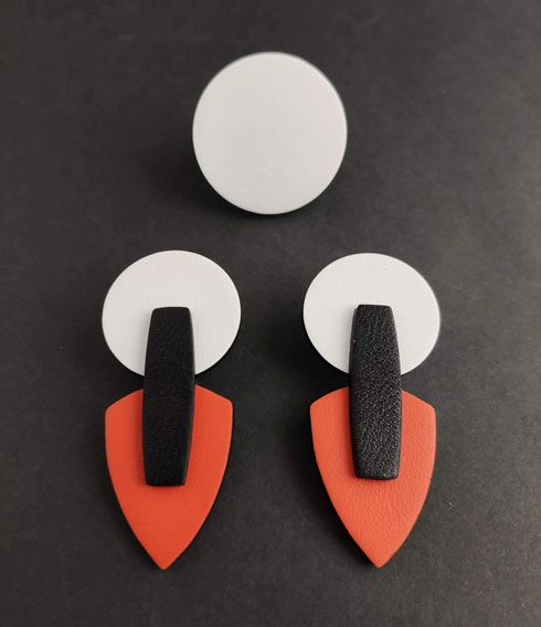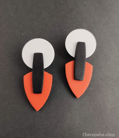 Серьги из кожи СТРЕЛКА белый_оранжевый арт 27403