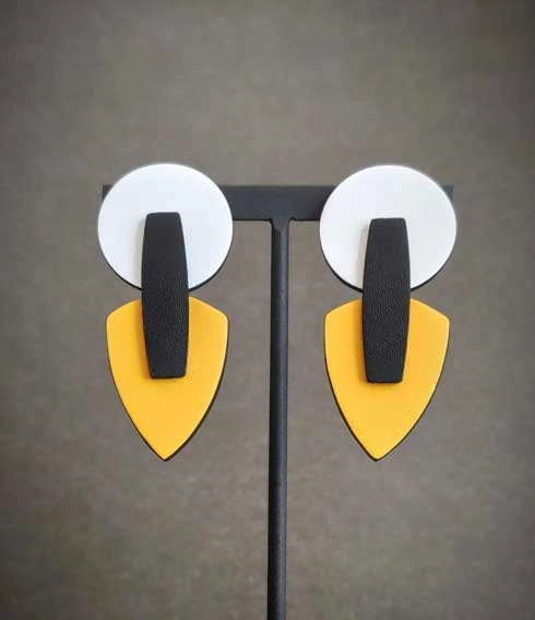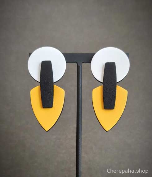 Серьги из кожи СТРЕЛКА белый_жёлтый арт 27402