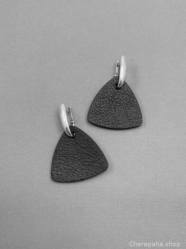 Серьги из кожи ТРЕУГОЛЬНИК M чёрный арт 38007
