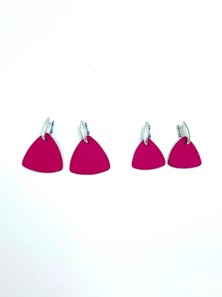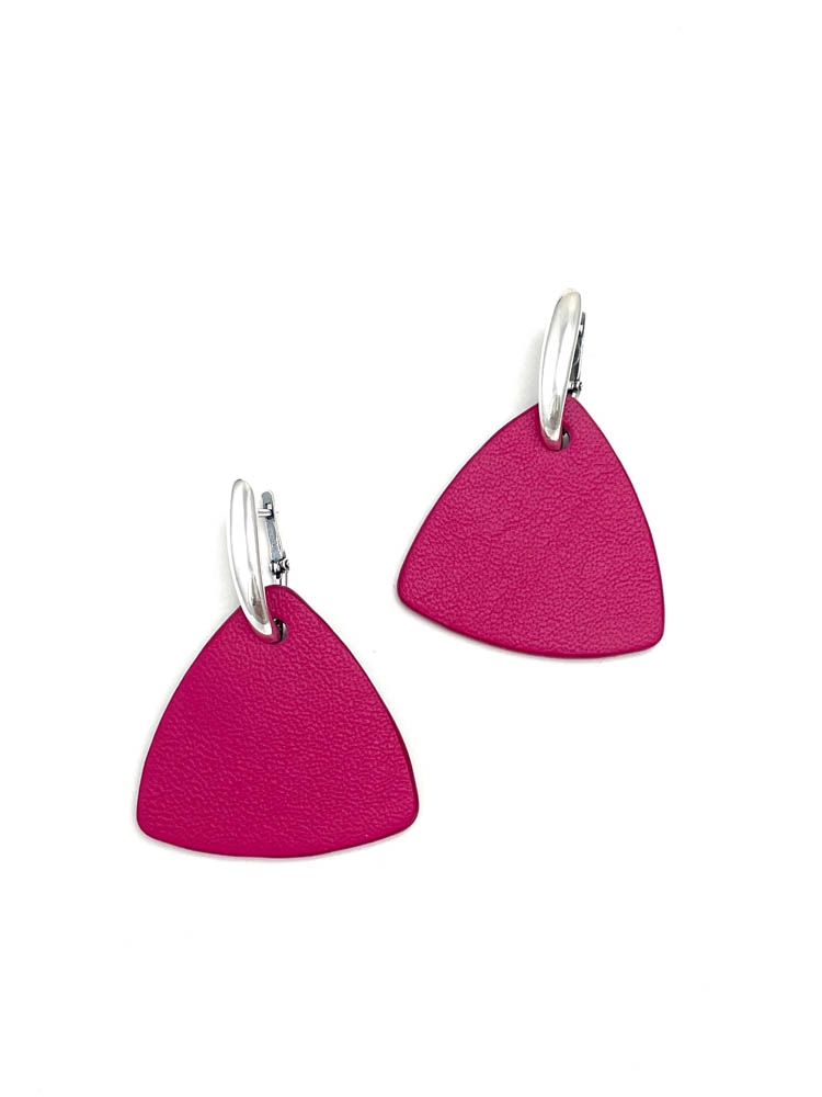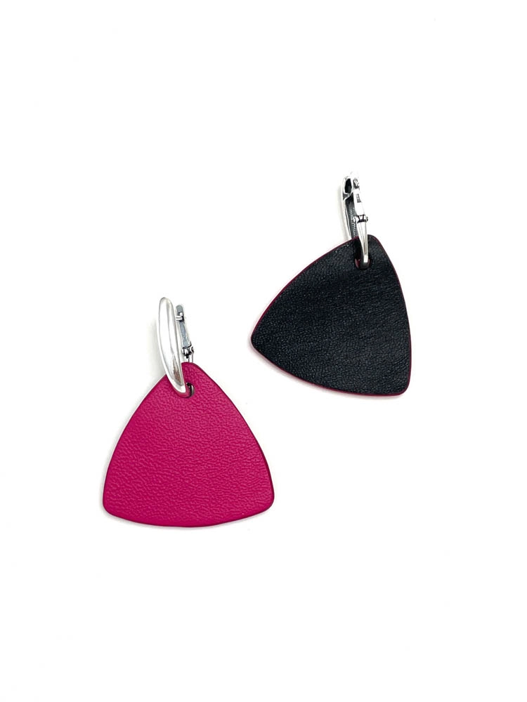Серьги из кожи ТРЕУГОЛЬНИК M фуксия чёрный арт 38005