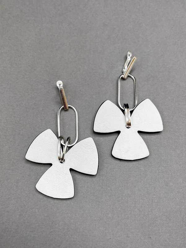 Серьги из кожи ТРИЛИСТНИК белый арт 40402
