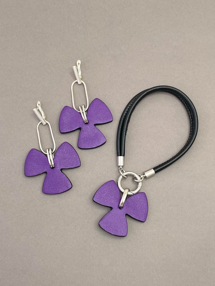 Серьги из кожи ТРИЛИСТНИК фиолетовый арт 40405