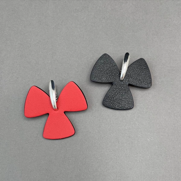 Серьги из кожи ТРИЛИСТНИК L красный чёрный арт 41303