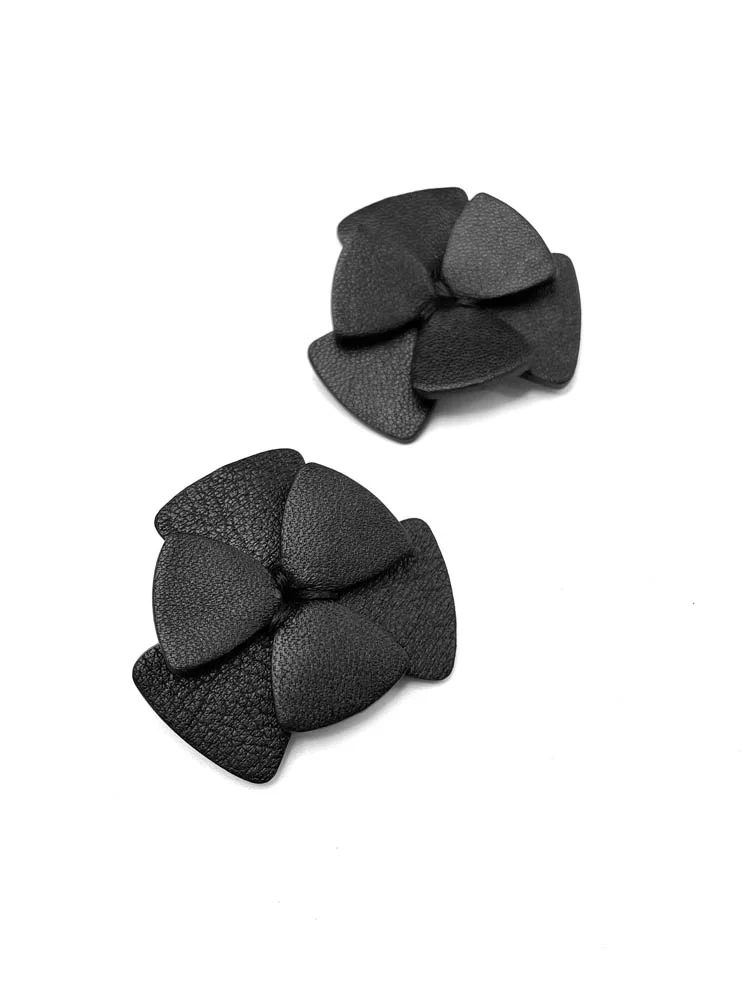 Серьги ЦВЕТОК из кожи чёрного цвета.